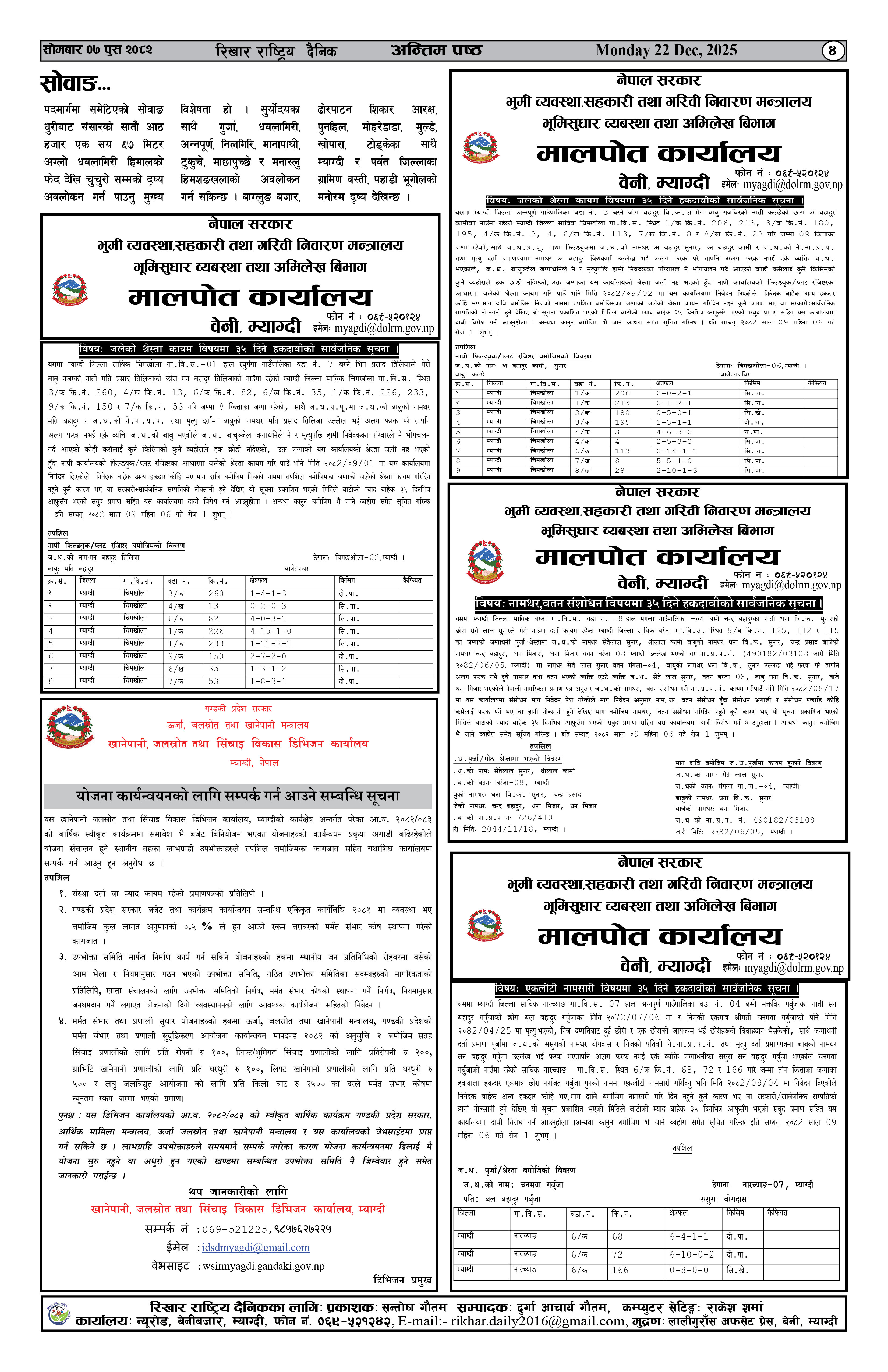 आ.व. २०८१/०८२ को अन्त्य संगै खानेपानी, जलस्रोत तथा सिंचाई विकास डिभिजन कार्यालय म्याग्दीमा कार्यरत कर्मचारीहरुको सामुहिक तस्विर